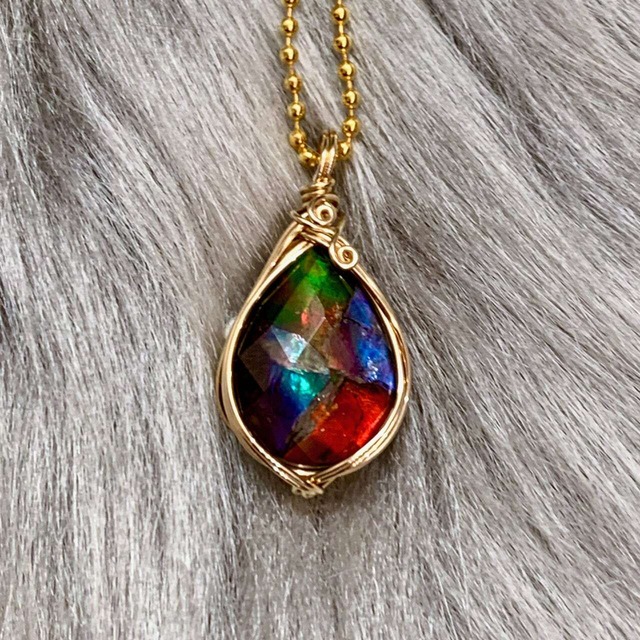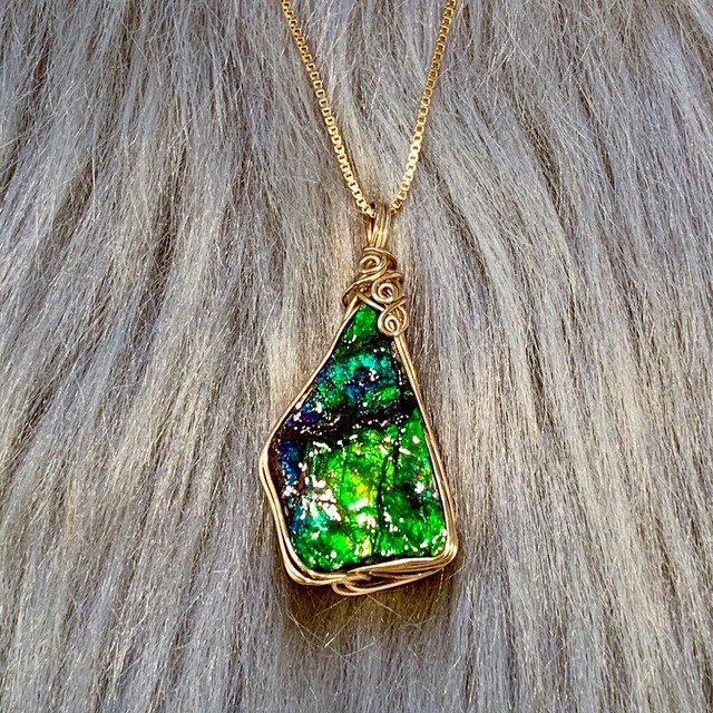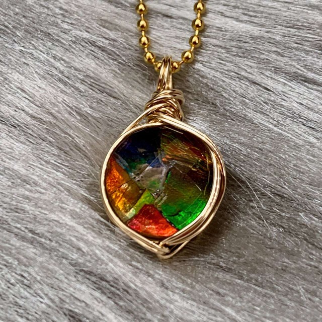 アンモライト フォッシル ワイヤーラップペンダントAWP-11