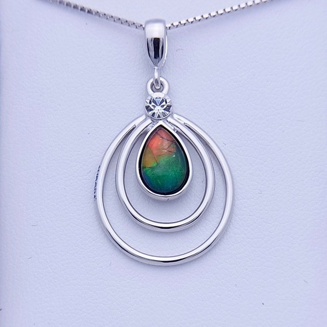アンモライト シルバー ペンダント トップ 宝石 ジュエリテャイドロップ型 Aグレード AURORA p1372