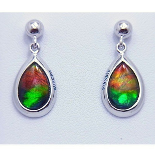 アンモライト ティアドロップ型ピアス シルバー 925 ロジウム 仕上げ 宝石 ジュエリー AURORA ep1362