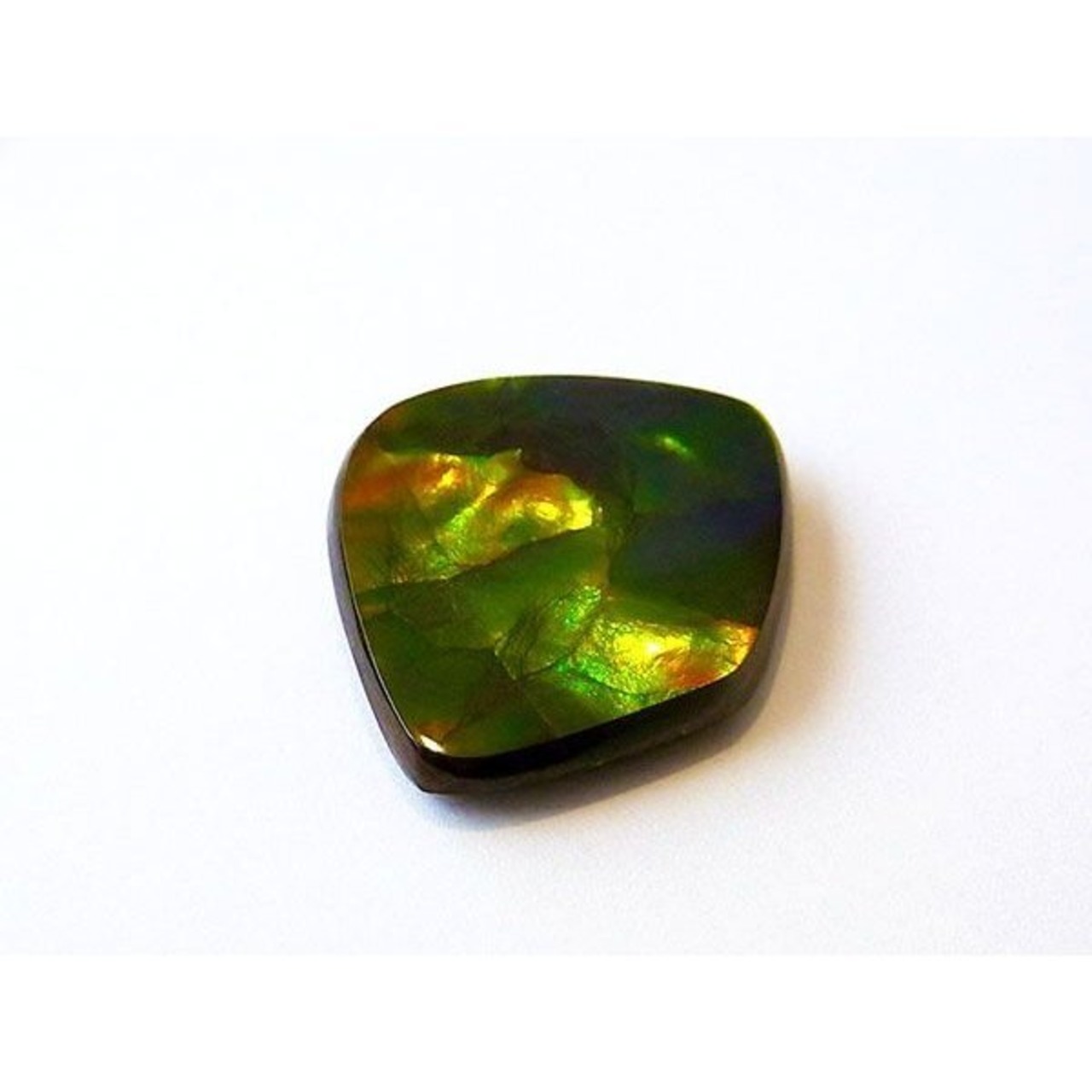 ■特徴:両面に色を持つWフェイスのルースは、ナチュラルルースの中でも非常に少なく全体の2%くらいしかありません。全体がアンモライト層のため厚みのあるものでなければ作れないからです。オレンジと緑の明るい面と、落ち着いた深みのある緑の両面を持つストーン。