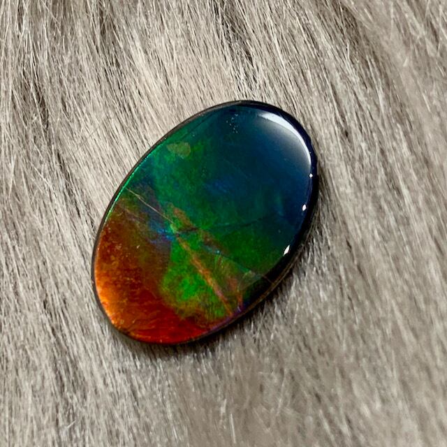 「アンモライト」とはカナダ・アルバータ州で採れるアンモナイトの化石だけにつけられた宝石としての名前です。