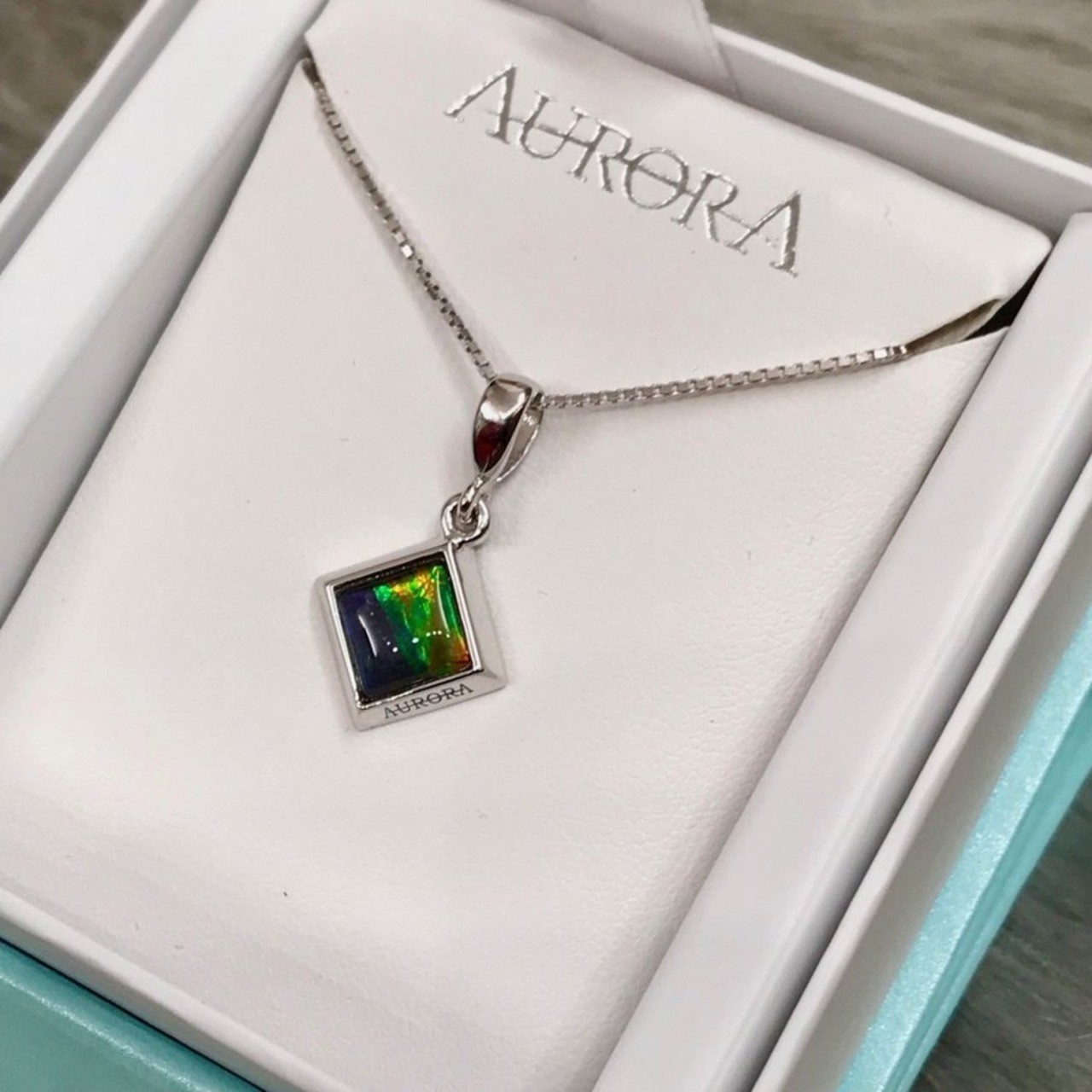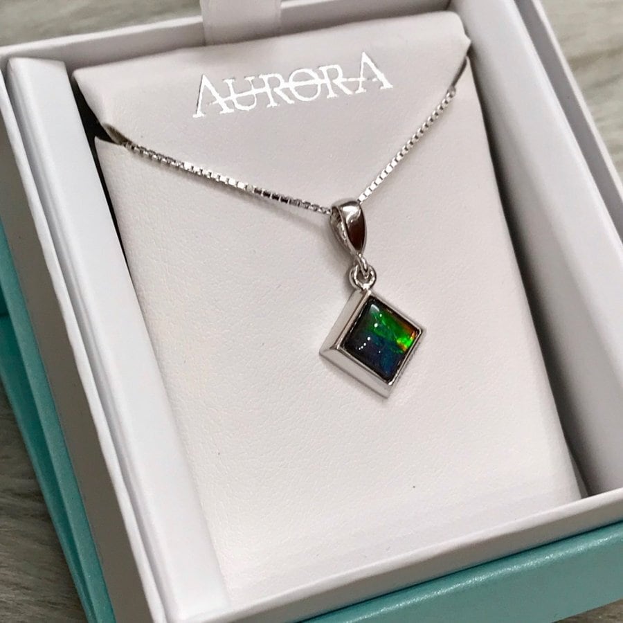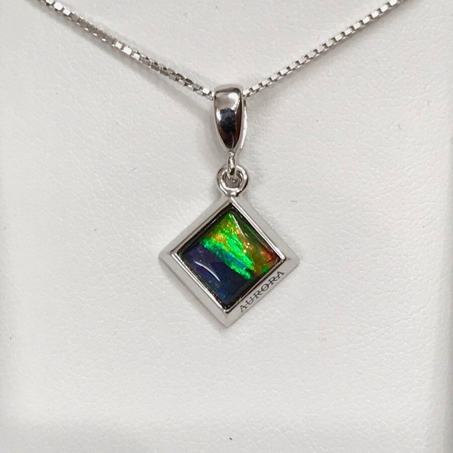 アンモライト シルバー ペンダント トップ 宝石 ジュエリー 正方形型 Aグレード AURORA p1373