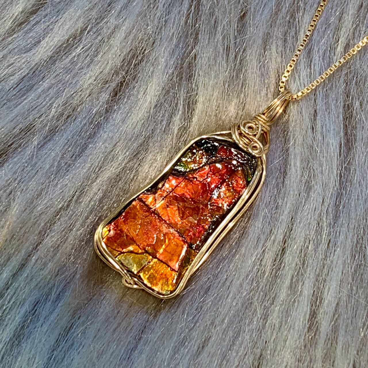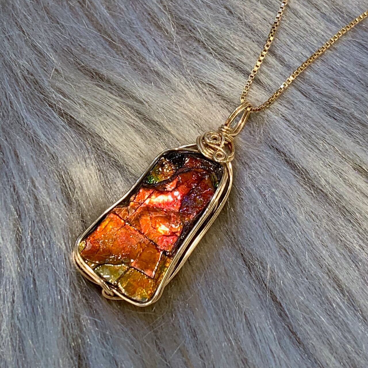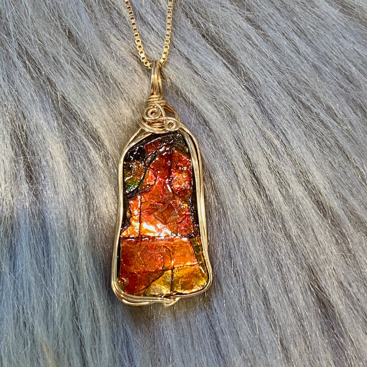 アンモライト フォッシル ワイヤーラップペンダントAWP-11
