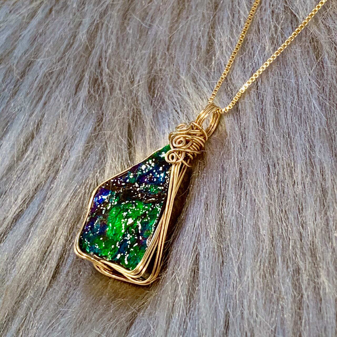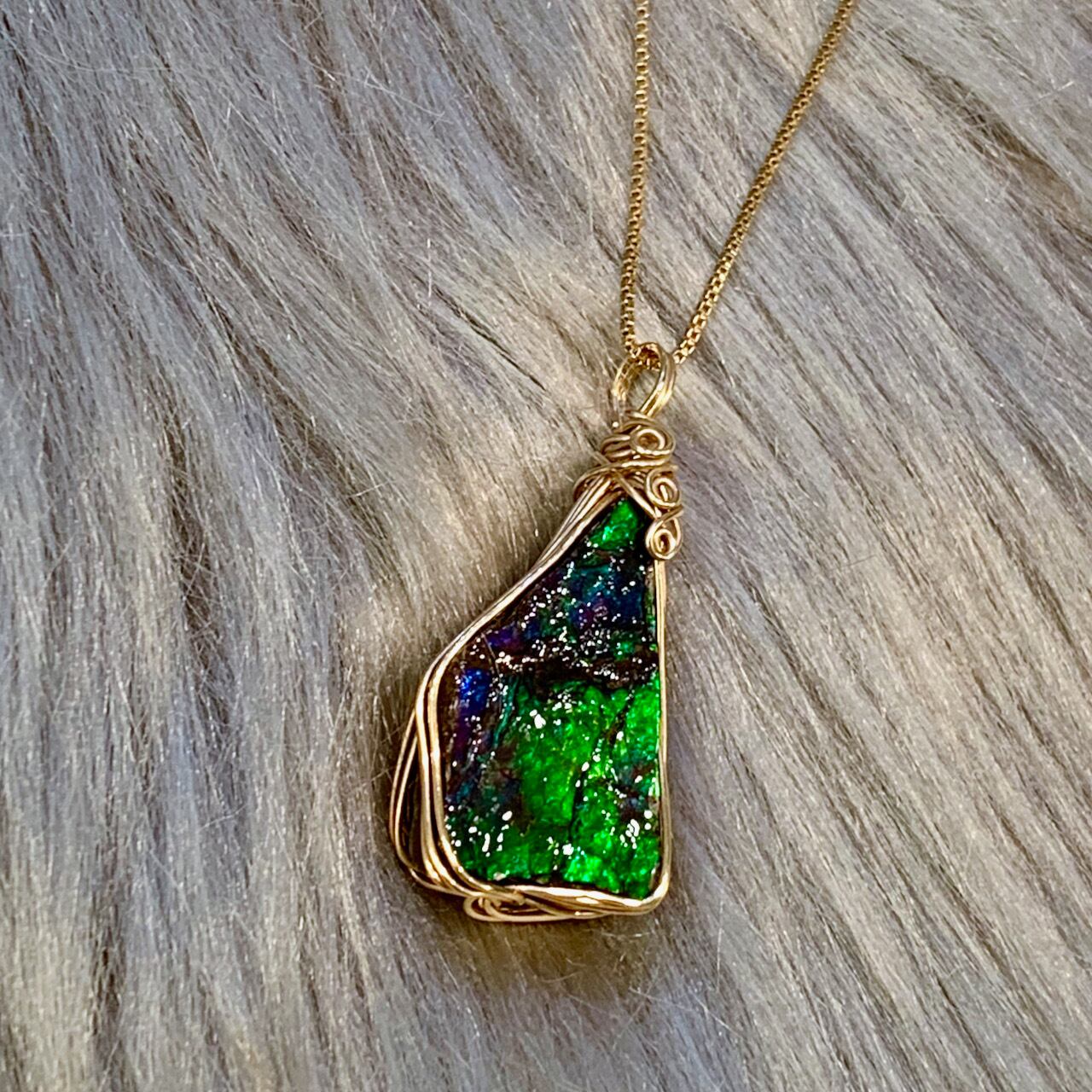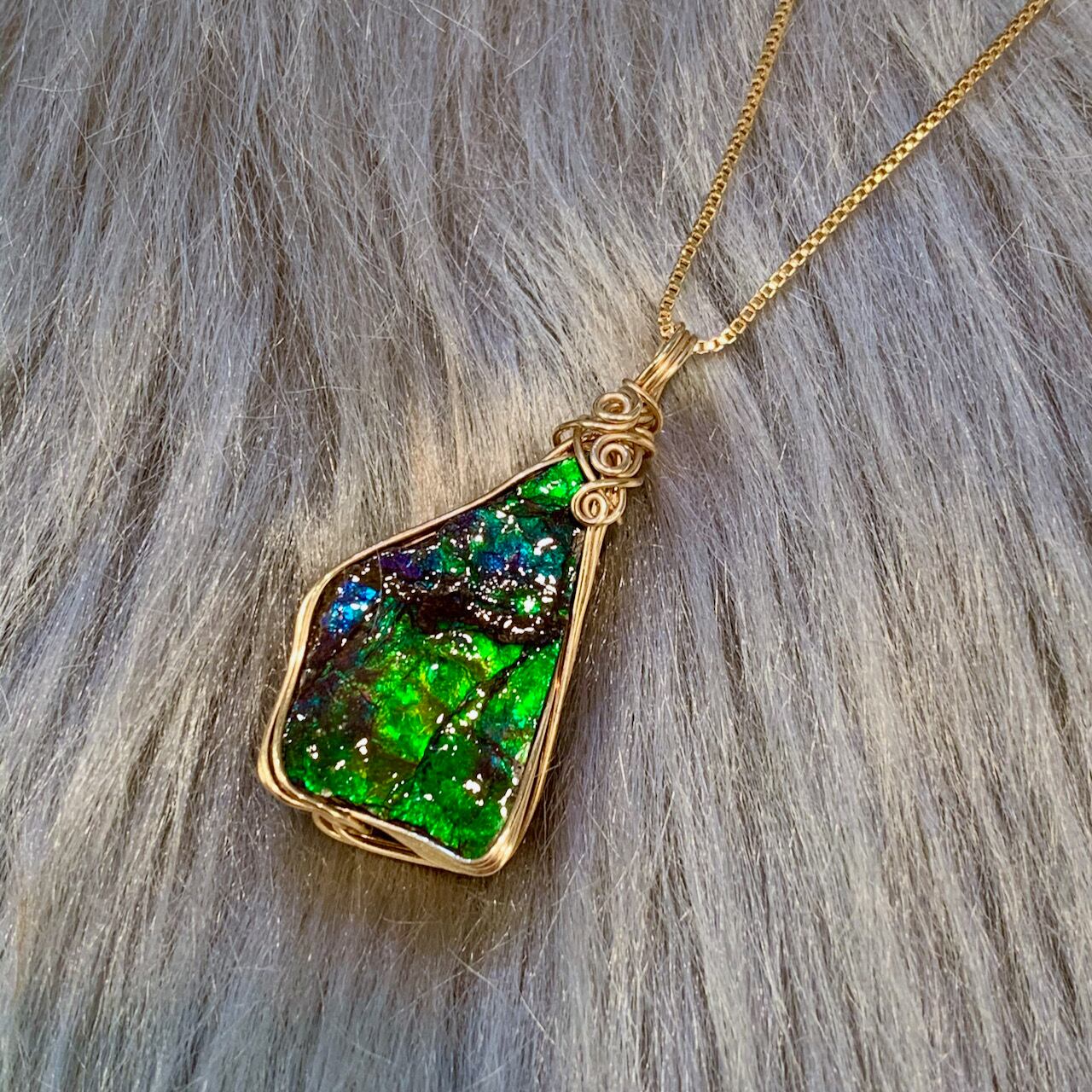 アンモライト フォッシル ワイヤーラップペンダントAWP-15
