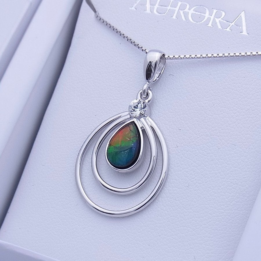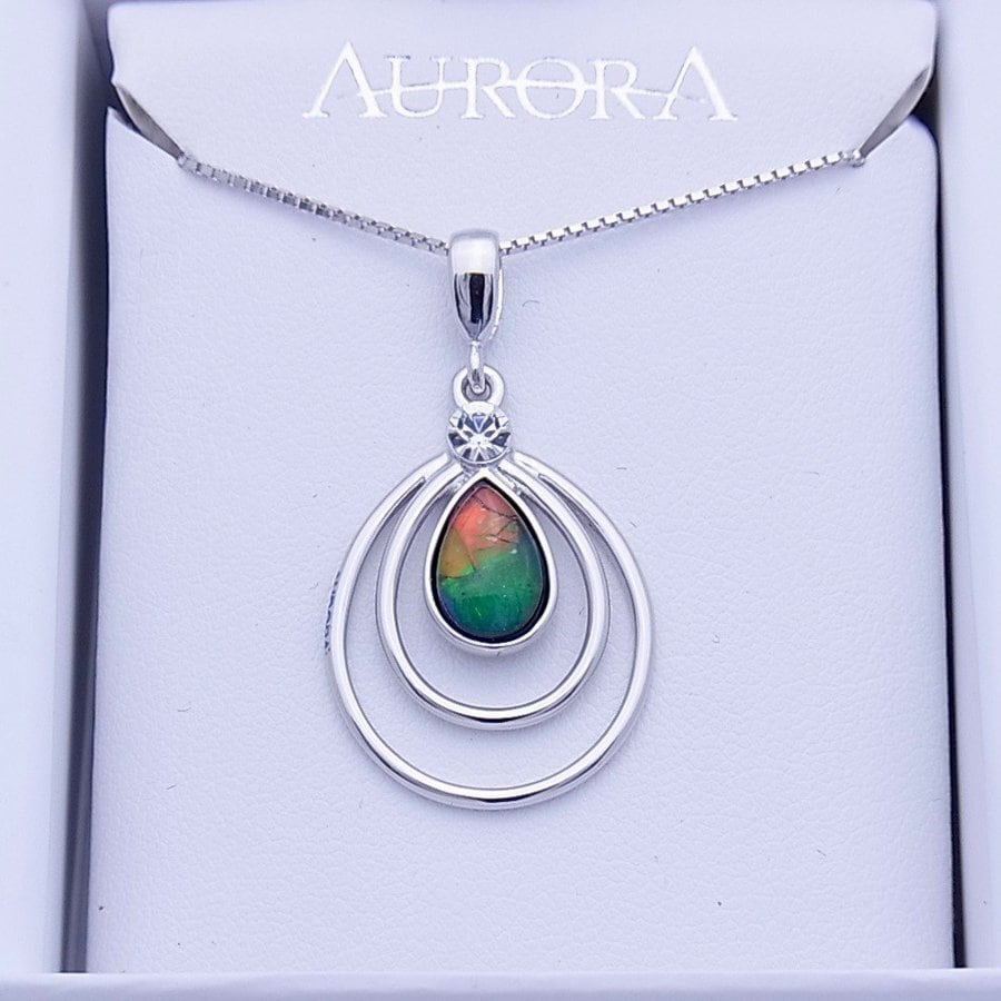 アンモライト シルバー ペンダント トップ 宝石 ジュエリテャイドロップ型 Aグレード AURORA p1372