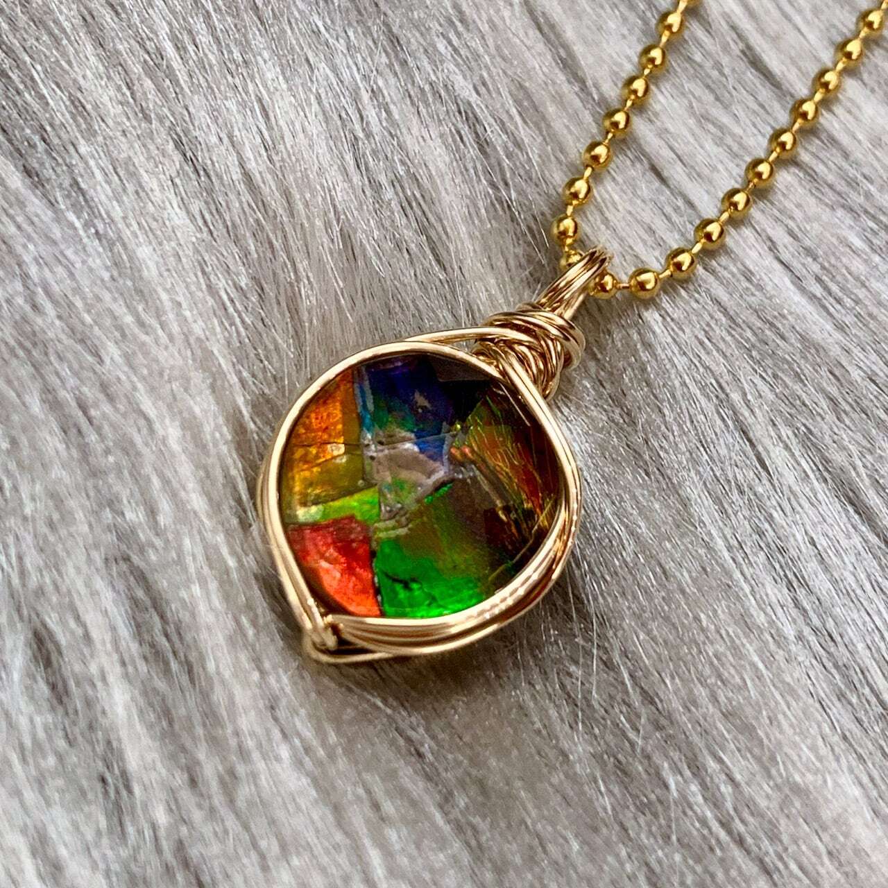 アンモライト モザイク ワイヤーラップペンダントAWP-20