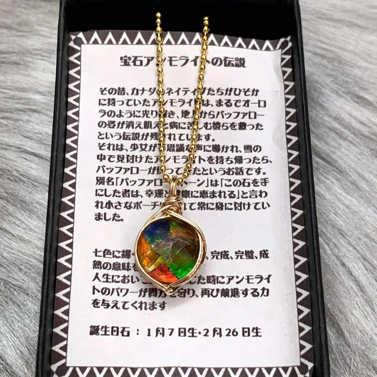 ●アンモライトについて:「アンモライト」とはカナダ・アルバータ州で採れるアンモナイトの化石だけにつけられた宝石としての名前です。